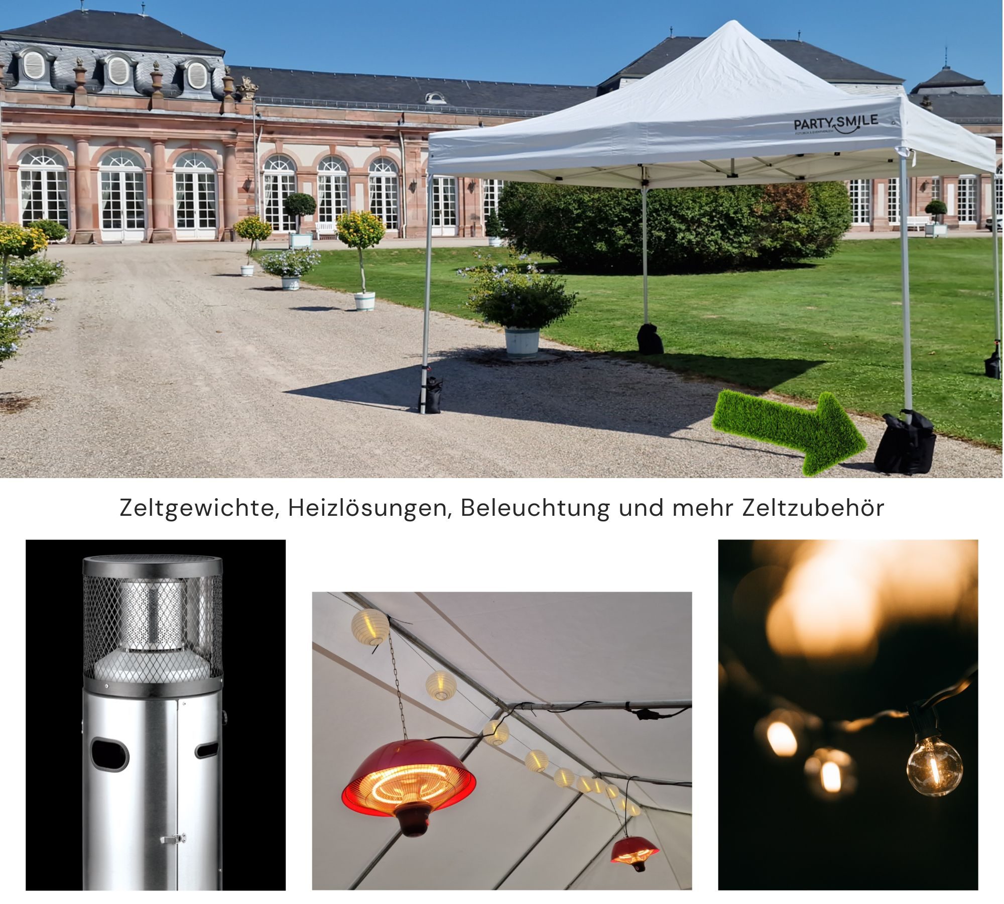 Denken Sie auch an passendes Zubehör wie Beschwerungssäcke, Lichterketten, Heizung...