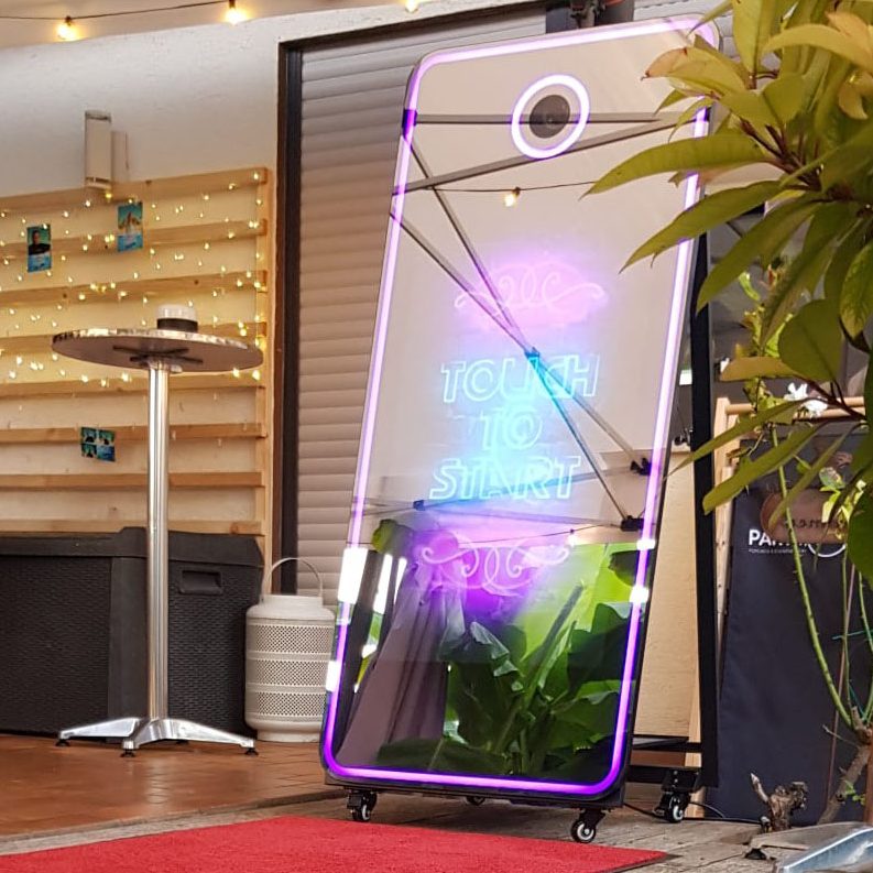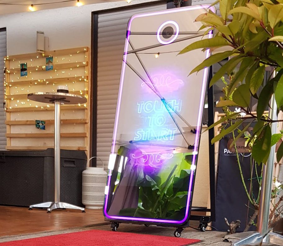 Dank seiner kompakten Größe und Akkubetrieb ist der Handspiegel ein echtes Highlight auch an den Sitzplätzen der Gäste wenn er durchgereicht wird. Egal, ob bei Hochzeiten, Geburtstagsfeiern oder Firmenfeiern – die Fotobox Selfio schafft unvergessliche Erinnerungen, die Ihre Gäste noch lange nach der Veranstaltung erfreuen werden.