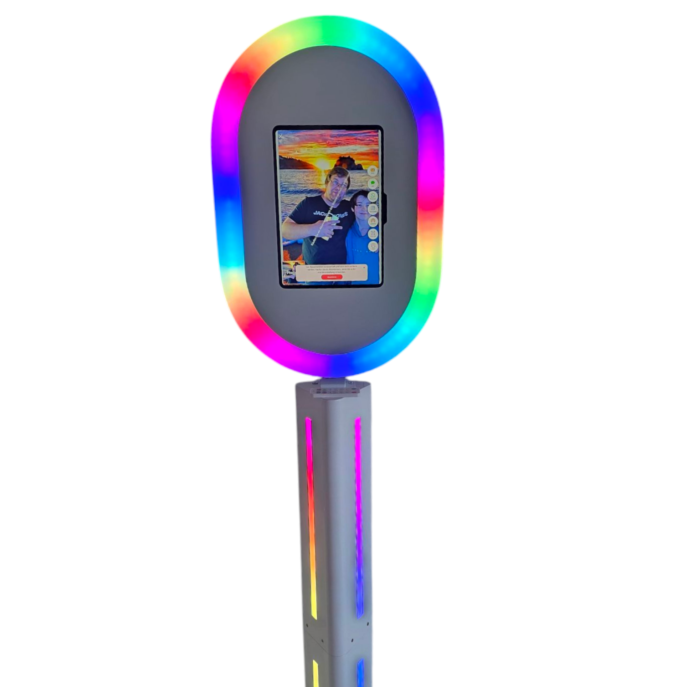 Unsere kompakten Fotoboxen nutzen ein modernes Tabletsystem mit integrierter Kamera. Das sorgt für eine besonders einfache Bedienung, schnellen Aufbau und eine platzsparende Lösung – perfekt für Events mit viel Licht und begrenztem Platz oder wenn es einmal nicht so teuer sein muss.