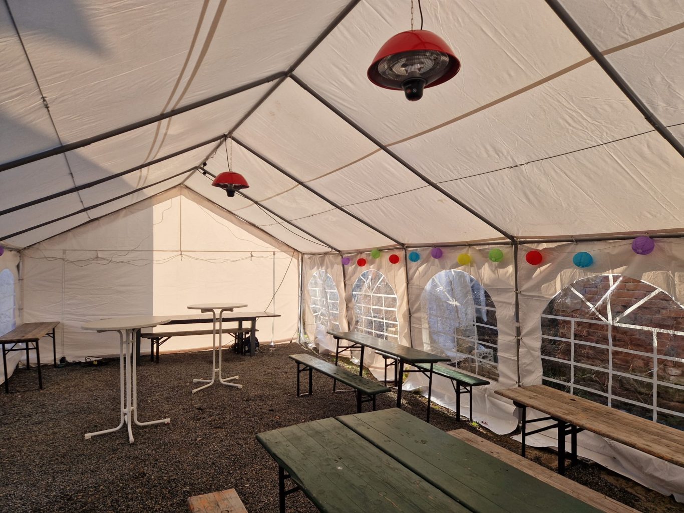 ca. 120 Stehplätze, ca. 100 Sitzplätze durch 10 Biertischgarnituren, ca. 85 Sitzplätze auf Stühlen.